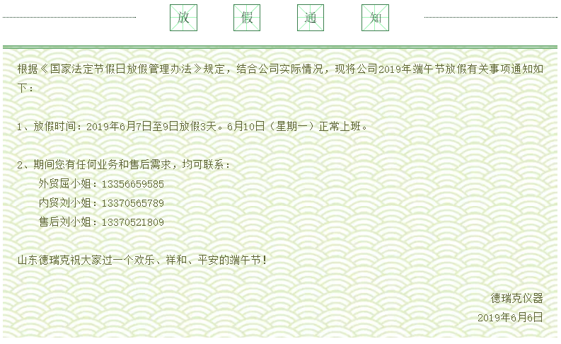 放假通知 ‖ 山東德瑞克祝大家過一個快樂、祥和、平安的端午節!